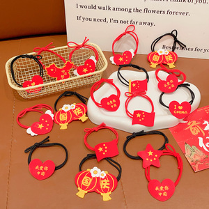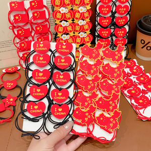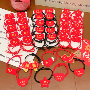 儿童发绳女童国庆节五星红旗橡皮筋学生喜庆红色头绳女孩发圈发饰