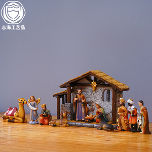 新品跨境供应圣诞骆驼马槽组摆件礼盒带房子节日礼品树脂工艺品