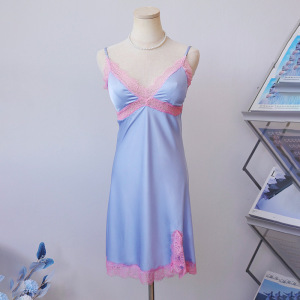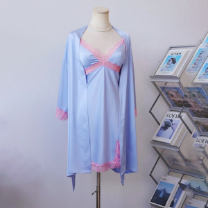 3146蓝粉絮梦短款(吊带+袍)