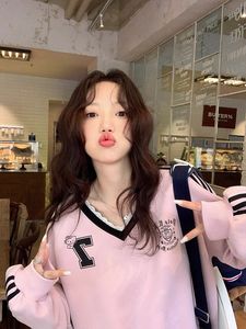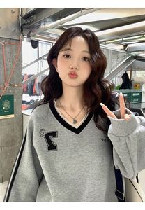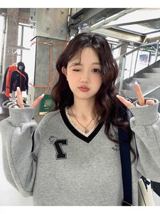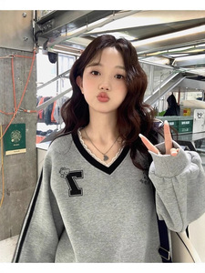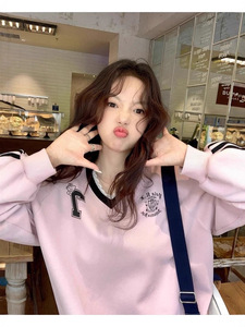 【自家工厂现货】韩系秋冬季球衣风休闲卫衣女蕾丝边撞色长袖上衣