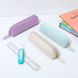批发可印logo创意PU皮笔袋拉链设计简约学习文具用品皮革收纳袋