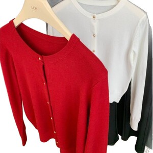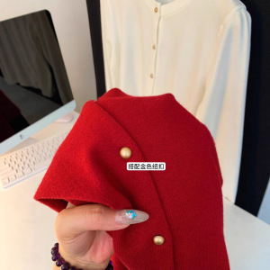 2025秋季红色针织开衫订婚新款显瘦气质上衣复古羊毛短款外套