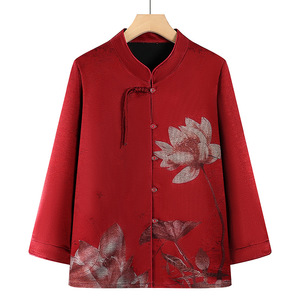 中老年人女装春秋装外套妈妈厚长袖衬衫60-70老人春秋装奶奶服装