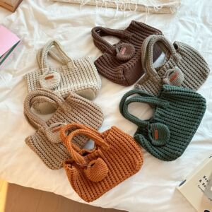 腋下包女新款韩国复古手工棉线编织包休闲手提包草编单肩包手机包