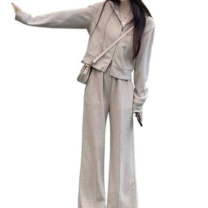 女装外出阔腿裤春秋拉链卫衣新款两件套连帽休闲运动套装女2025年