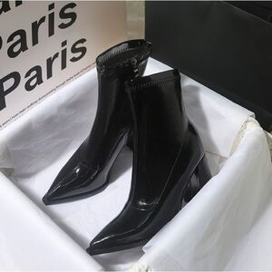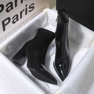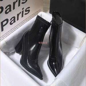 法式尖头高跟鞋女秋冬款韩系小踝靴2025新款粗跟感小短靴气质女人