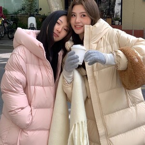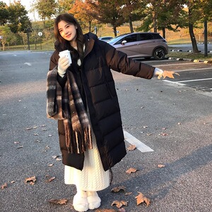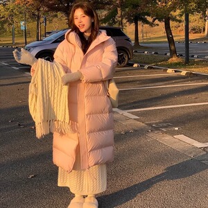 网红贝贝2025冬季新款长款过膝连帽羽绒服女宽松大衣外套加厚保暖