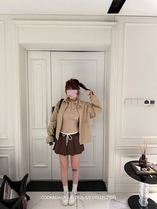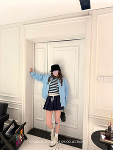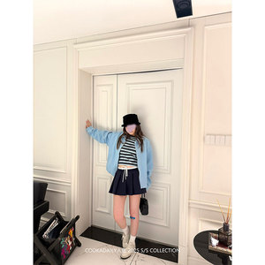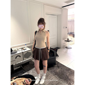 COOKADAILY人鱼2025新款加州学院风拼接撞色腰头气质休闲百褶裙裤