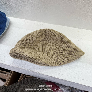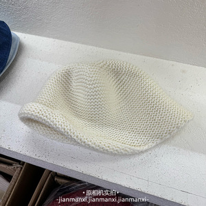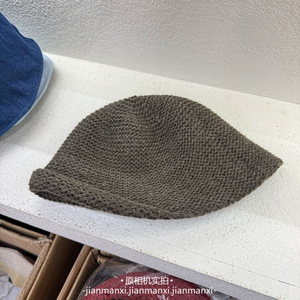 纯色简单针织卷边水桶帽子女秋冬复古咖色大头围套头帽渔夫帽