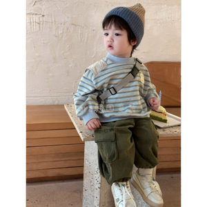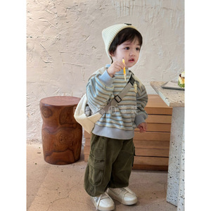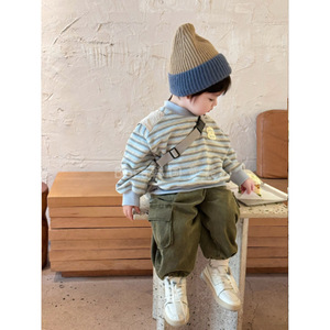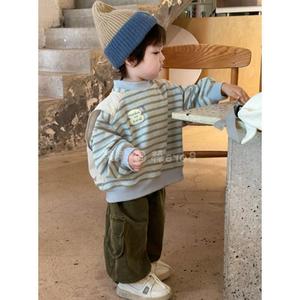 男童卫衣春秋装儿童2025新款宝宝条纹拼色运动打底衫洋气加绒上衣