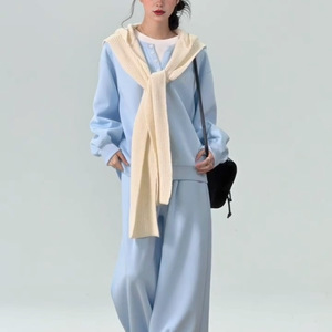 慵懒纯色舒适睡衣女秋季薄款披肩长袖长裤卫衣三件套家居服外穿战