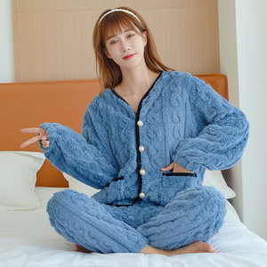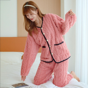 睡衣女士可外穿 2025年秋冬季加绒加厚珊瑚绒保暖家居服两件套装