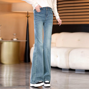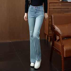 浅蓝色时尚牛仔微喇叭裤女高腰秋季2025年新款百搭显瘦修身马蹄裤