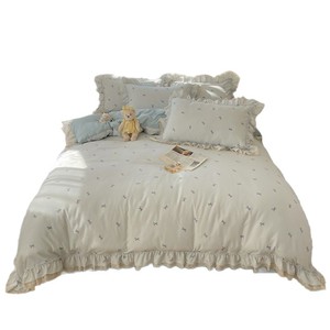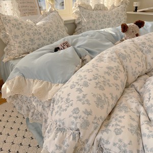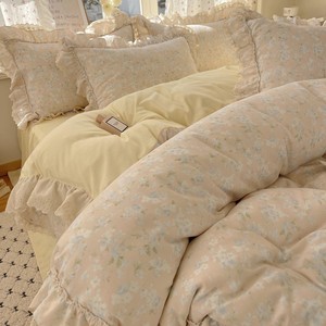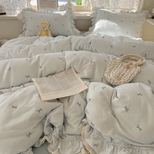 A类母婴级纯棉裸睡四件套蕾丝花边全棉双层纱超软糯学生宿舍床裙