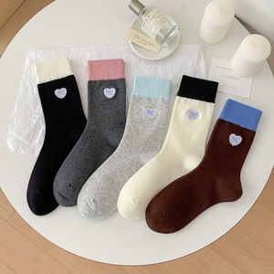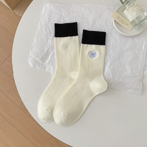 秋冬新款诸暨袜子女中筒袜蝴蝶结彩色罗口纯棉堆堆袜日系ins潮袜