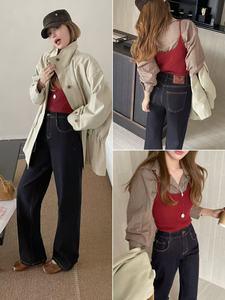 秋上新TOP 欧制韩版四面弹巨简约百搭窄板弹力阔腿裤牛仔裤3086