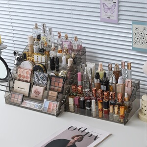 化妆品收纳盒透明亚克力置物架梳妆台阶梯护肤品眼影盘香水展示架
