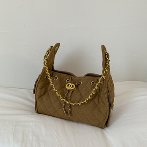 2025跨境新款包包菱格纹单肩包包女气质斜挎包纯色手提包简约女包