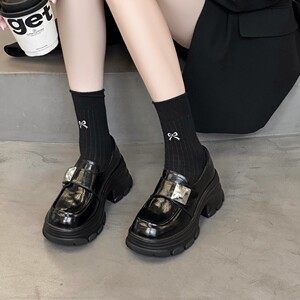 乐福鞋女款2025新款时尚百搭厚底增高轻便软底系带小众单鞋小皮鞋