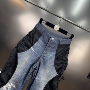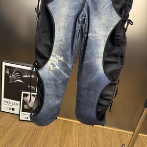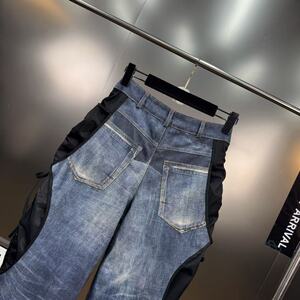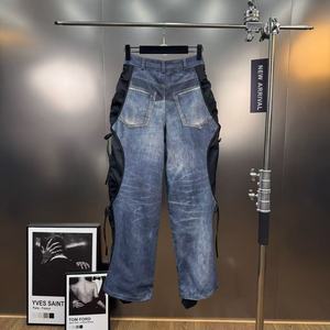 2025秋季拼接黑色镂空布重工美式辣妹风牛仔裤宽松直筒长裤