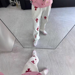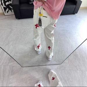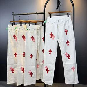 美式高街新款十字架贴布网红同款潮牌牛仔长裤宽松百搭休闲男女款