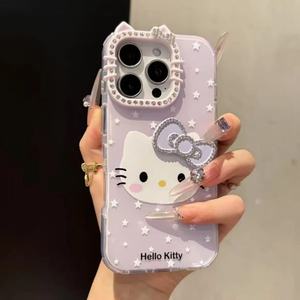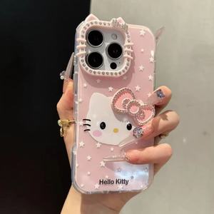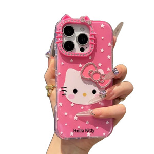 高颜值ims点钻边框kt猫立体蝴蝶结适用16pro手机壳苹果15新款14女