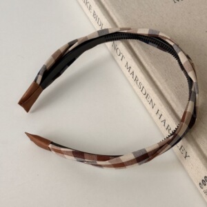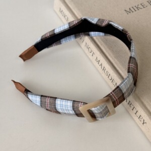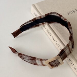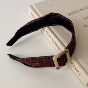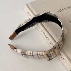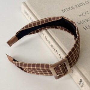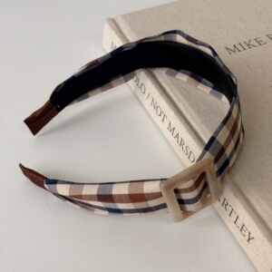 学院风复古格纹宽边方扣发箍早秋新款少女高颅顶外戴压发发卡发饰