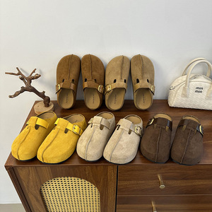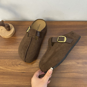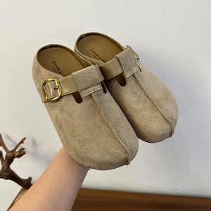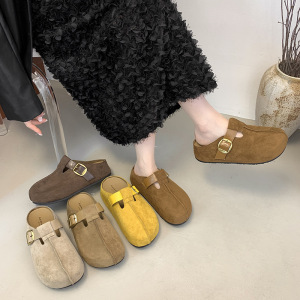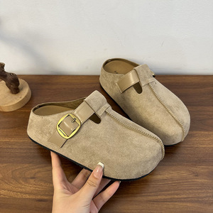 内增高厚底包头拖鞋女2025秋新款复古皮带扣懒人外穿勃肯半拖单鞋