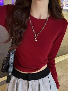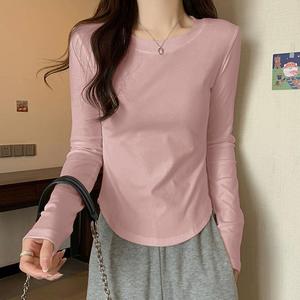 正肩长袖打底衫女内搭秋季新款打底t恤女修身高级感显瘦不规则