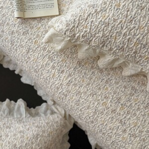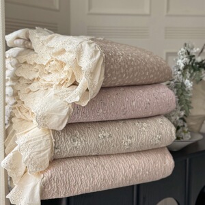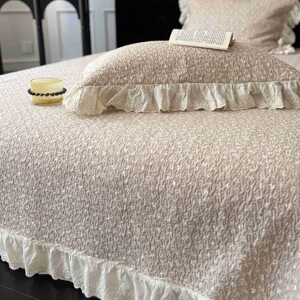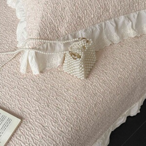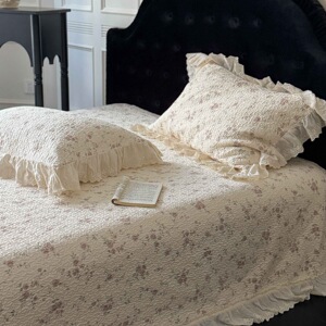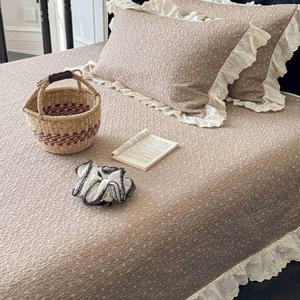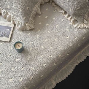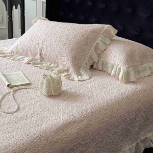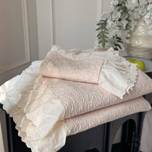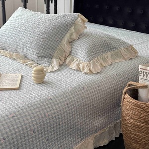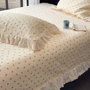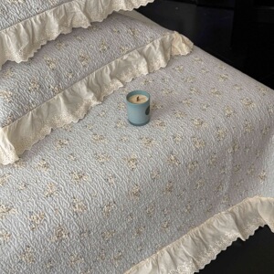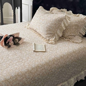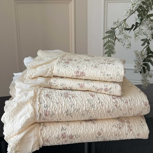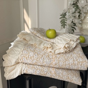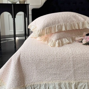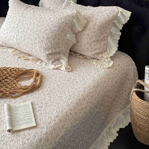 法式超大花边全棉绗缝夹棉床盖三件套搭配同款被套四季可用炕盖