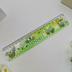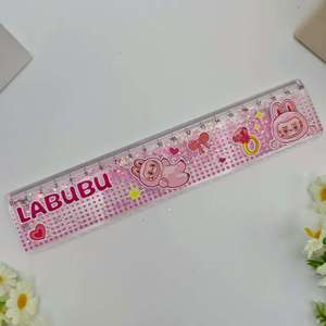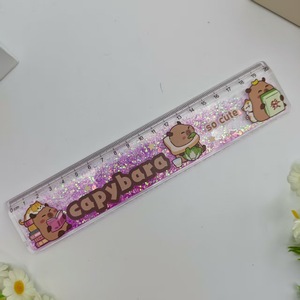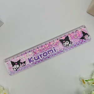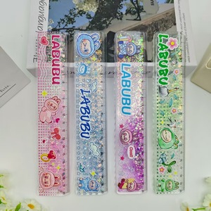 外贸拉布布卡通流沙尺金粉入油尺跨境LABUBU学生解压闪粉直尺套装
