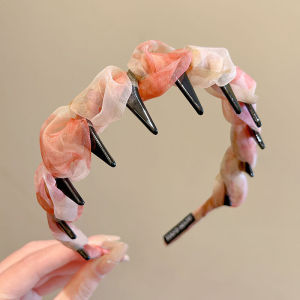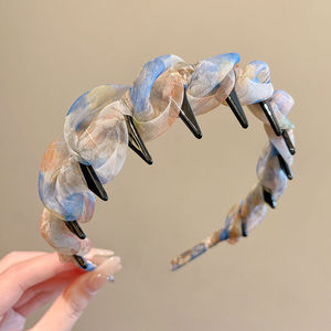 法式晕染网纱带齿发箍女百搭高颅顶蓬松头箍正反两戴发卡发捆发饰