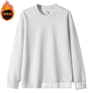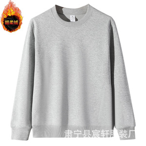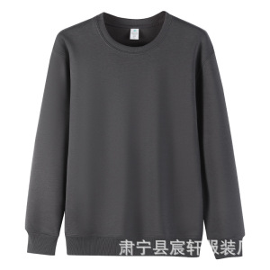 重磅圆领男卫衣现货320克迪桑棉纯色圆领宽松卫衣螺纹袖口卫衣