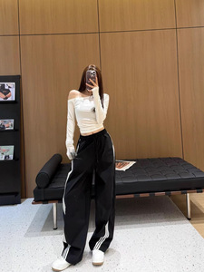 ann2025早秋南油新款字母印花松休闲运动风宽松长裤