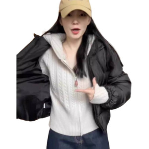 温柔风麻花连帽针织开衫女秋冬韩系慵懒拉链毛衣外套收腰短款上衣
