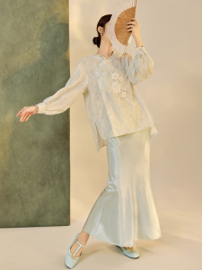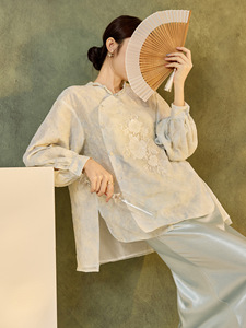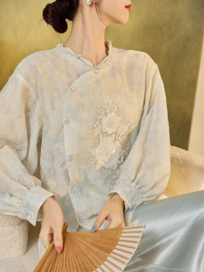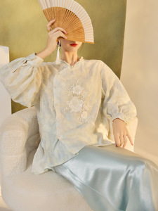 2025早秋新款复古盘扣刺绣衬衫国风新中式文艺斜襟设计上衣 N7023