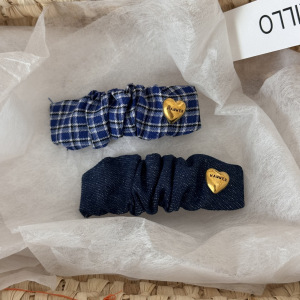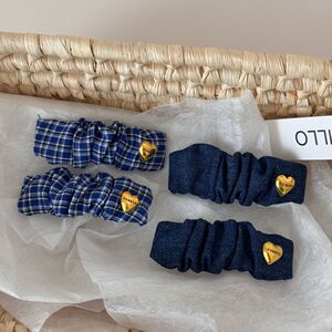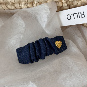 蓝色褶皱长方布艺发夹质感金扣爱心BB夹侧边夹刘海夹发饰新款