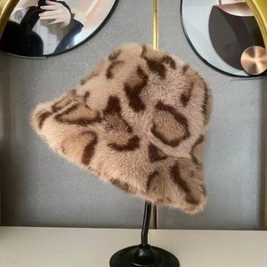 批发冬天帽子女新款百搭洋气时尚耳朵帽保暖仿水貂毛渔夫帽豹纹