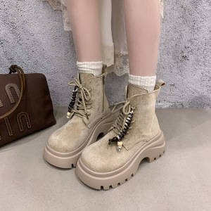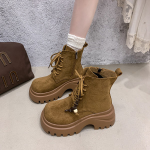 复古厚底马丁靴女2025年新款秋季气质百搭短靴小个子增高休闲靴子