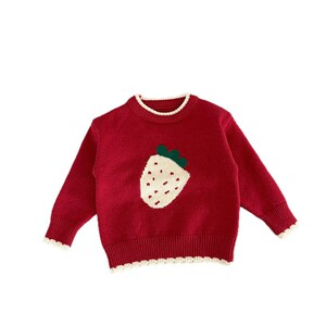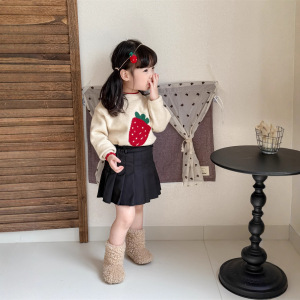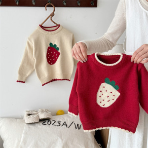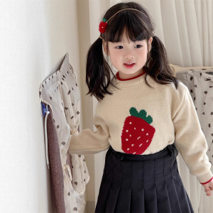 女童毛衣水果草莓提花针织衫圆领套头长袖可爱2025年秋冬新品上衣
