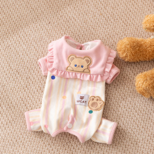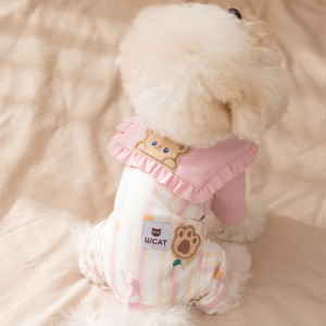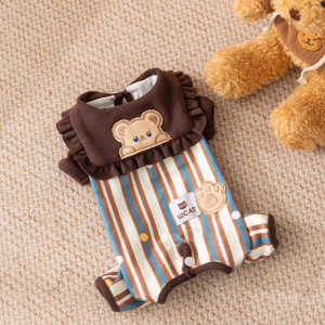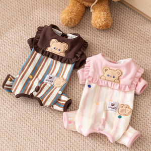 秋冬新款宠物海军领小熊条纹包肚衣家居服四脚狗狗猫咪衣服中小型