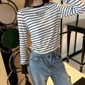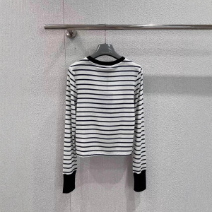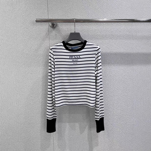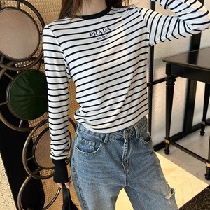 南油MM家25秋冬新款微标条纹撞色圆领长袖针织衫休闲上衣T恤