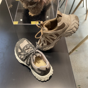 蝶澳真皮2025秋季新款休闲运动鞋女网面透气单鞋小个子内增高厚底