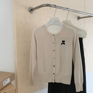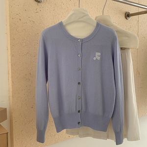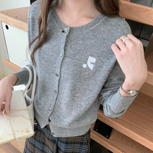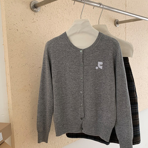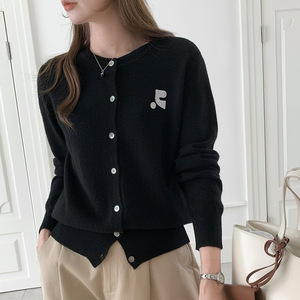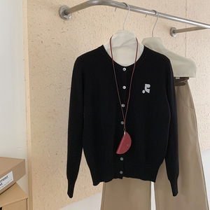 100纯羊毛开衫女士简约提花刺绣设计外套秋冬新款经典圆领上衣潮