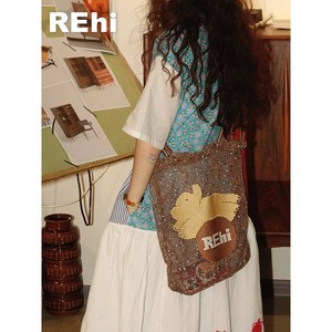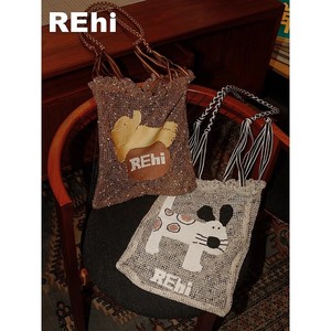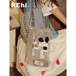 REhi 麻花兜兜袋 原创编绳小狗绣花编织大容量单肩包斜挎托特包