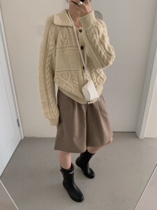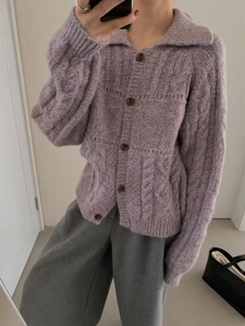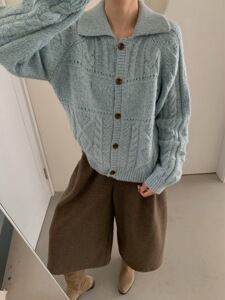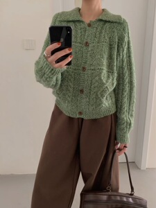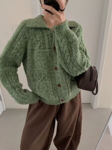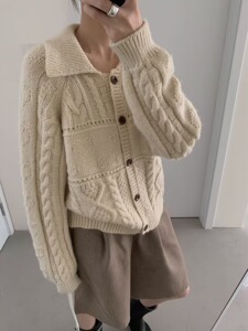 韩系风设计感Polo领绞花设计感毛衣女秋冬新款软糯慵懒风针织开衫