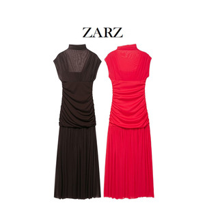 ZARZ 自制 欧美风 新款女装 百搭 时尚 洋气款 绢网拼接连衣裙