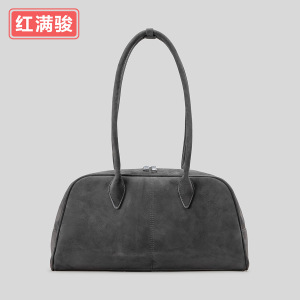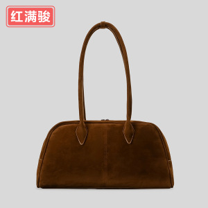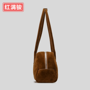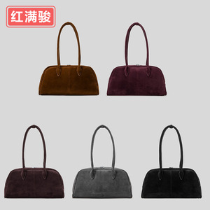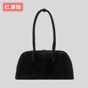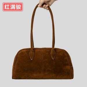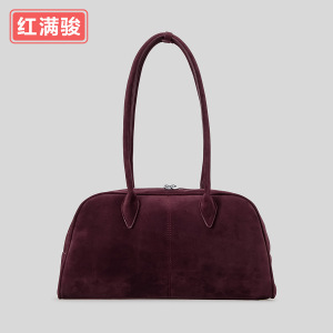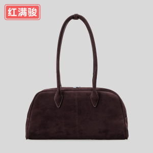 高级感仿麂皮绒大容量腋下包女保龄球磨砂波手提包波士顿单肩包