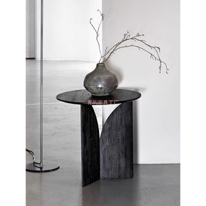 北欧全实木茶几沙发边几小户型客厅家用阳台桌子黑胡桃色圆形角几