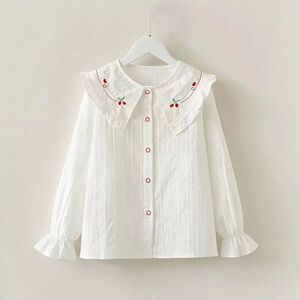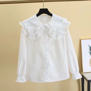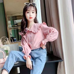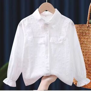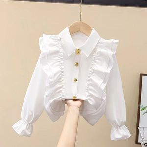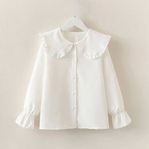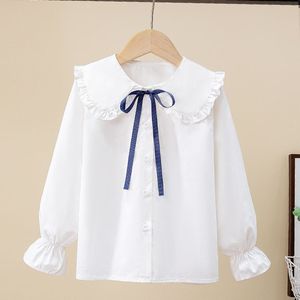 女童衬衫春秋新款白色中大童洋气女孩上衣儿童长袖学生娃娃领衬衣